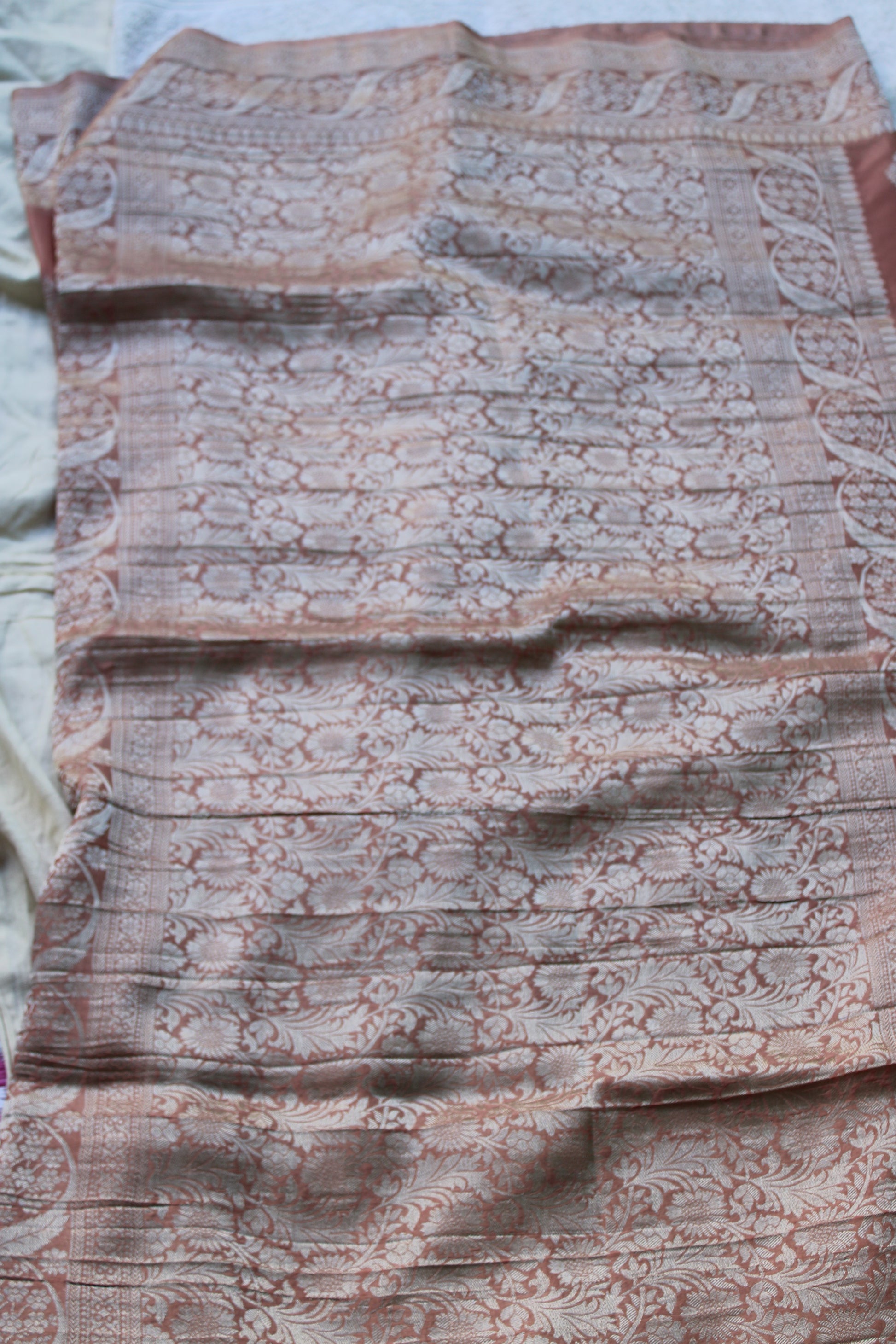 Peach Banarasi Mashru crape georgette Saree with flower design