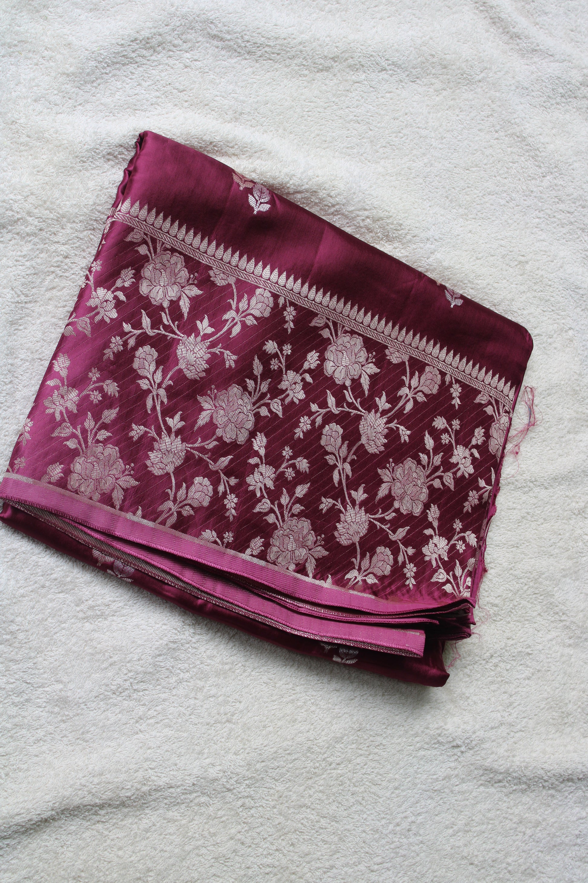 Majenta Banarasi Mashru silk saree with big trending floral border