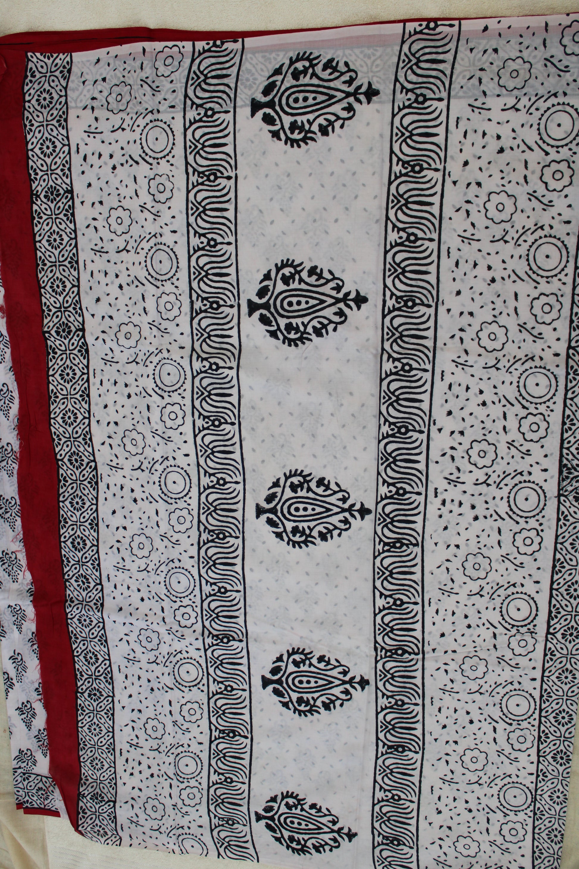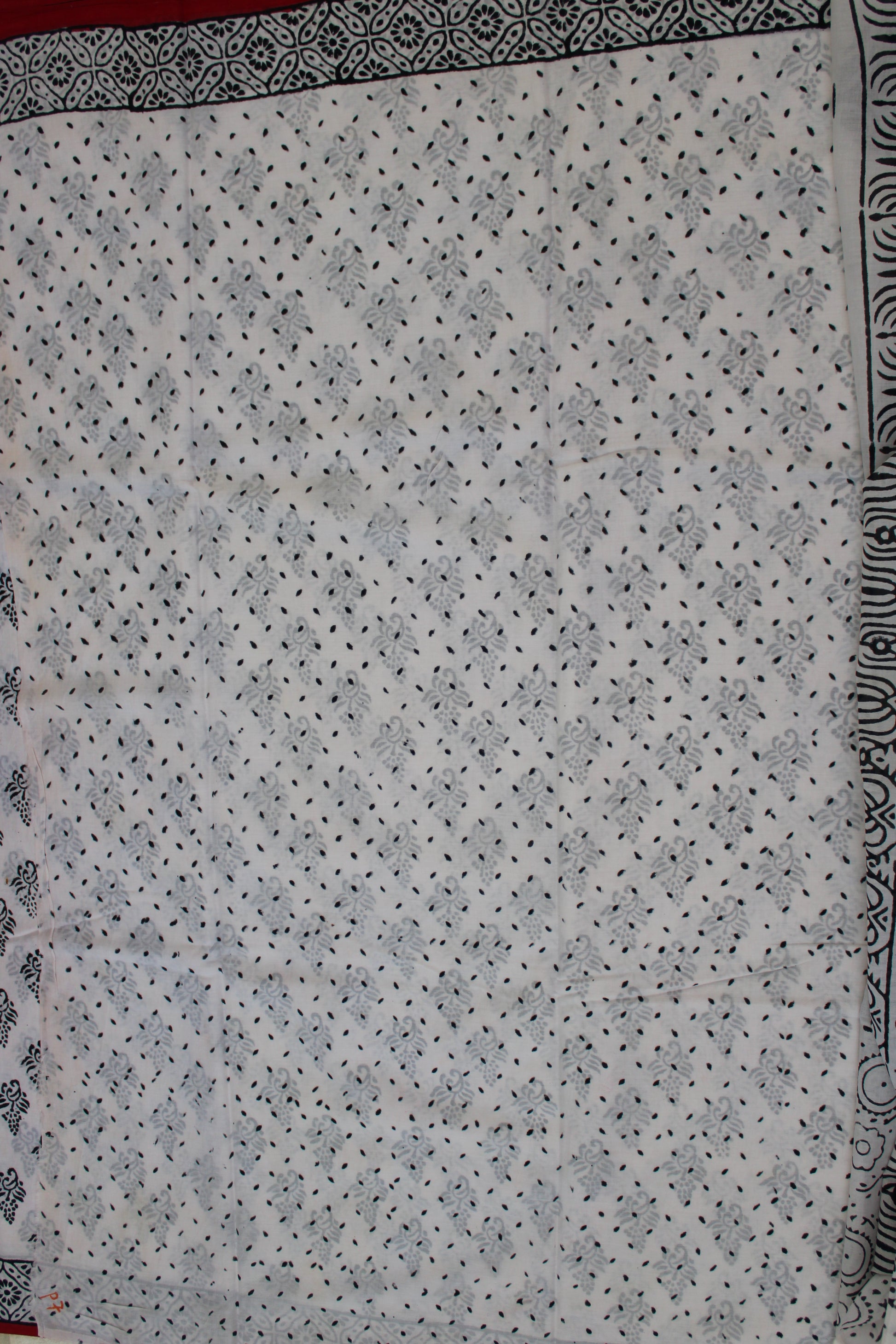 This white hand block printed mul cotton saree features an elegant leaf design, combining traditional craftsmanship with breathable fabric. Ideal for all-day comfort, it is perfect for office or professional wear, offering a refined and sophisticated look while ensuring ease throughout your busy day.