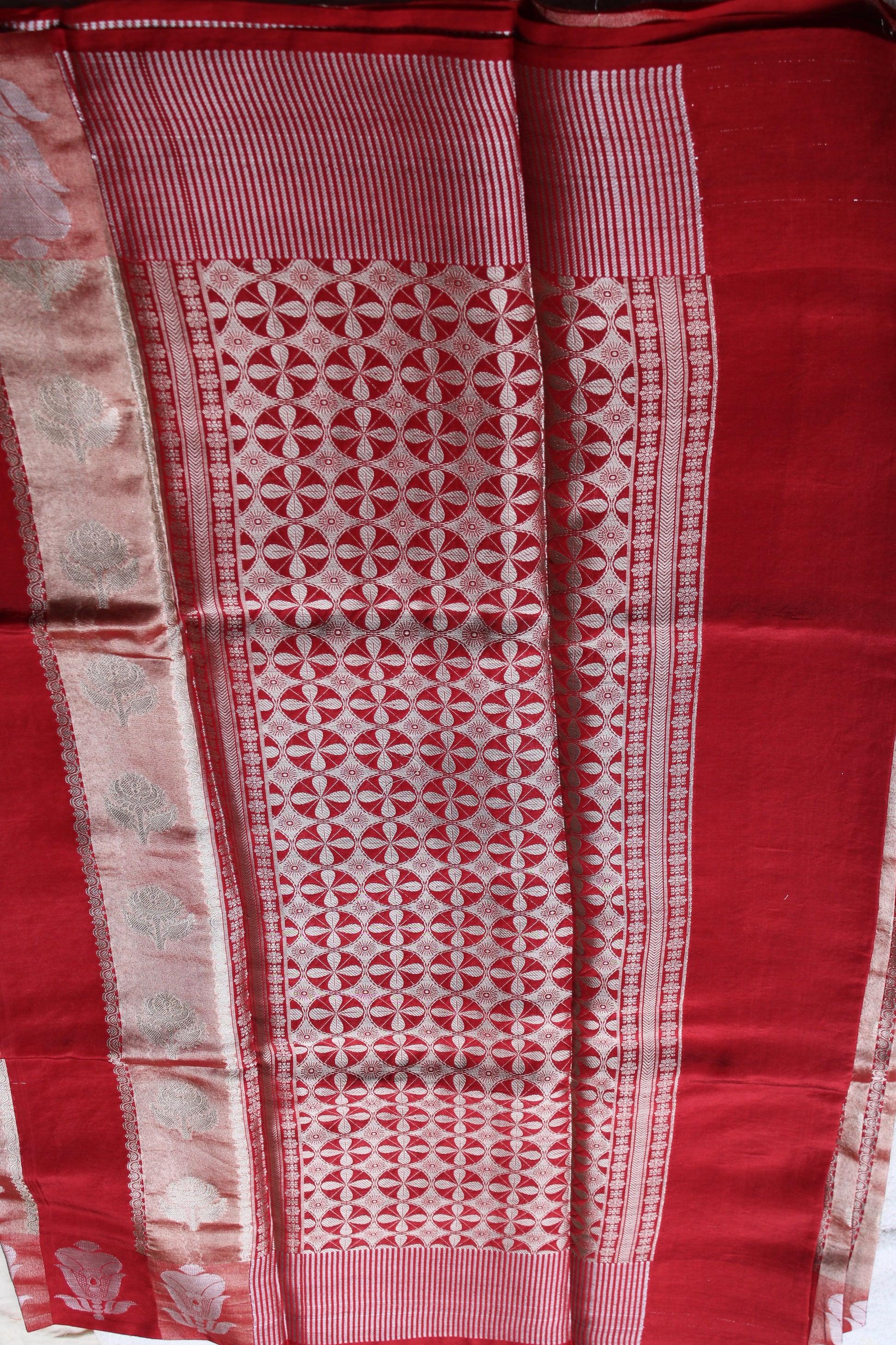 Red colour tissue and raw mango fusion saree