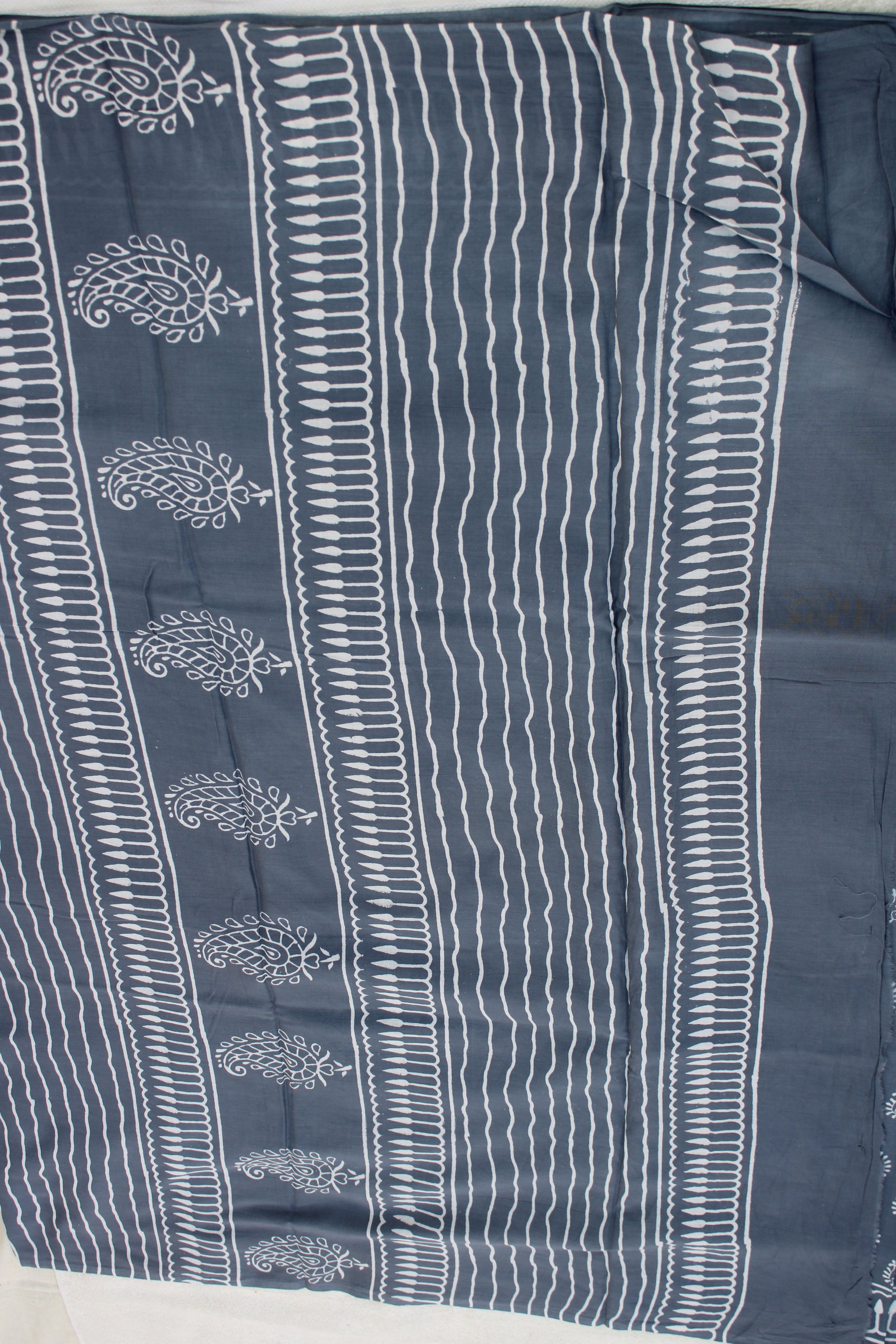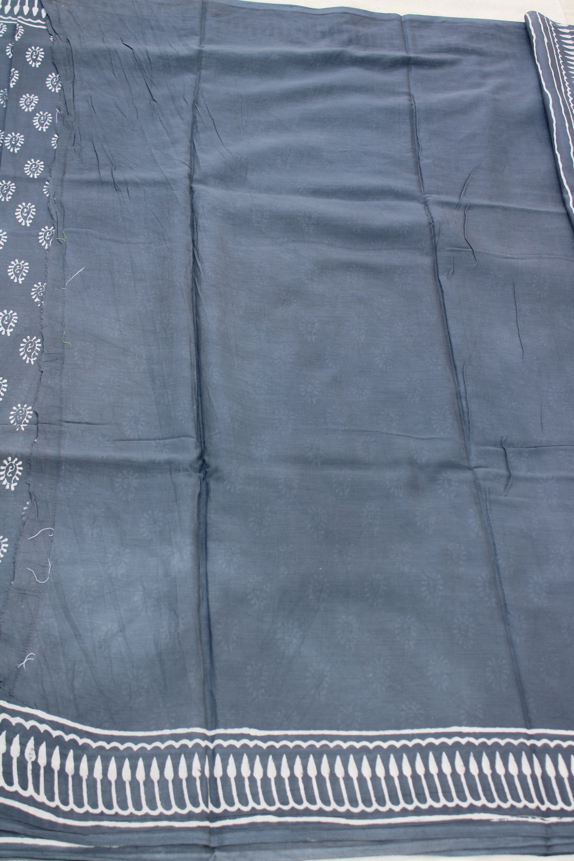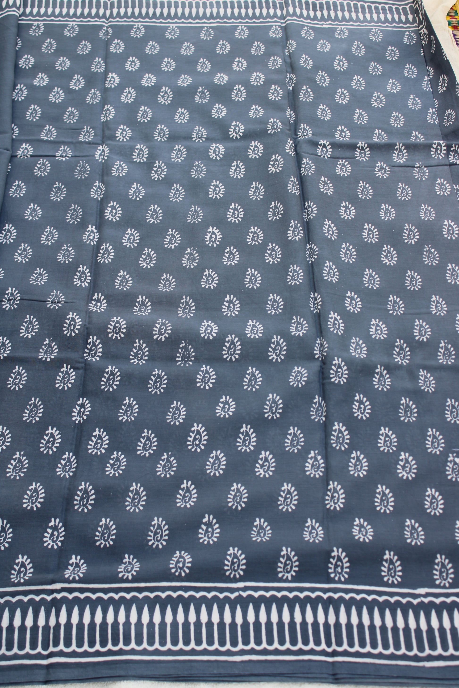 Grey hand block printed mul cotton saree