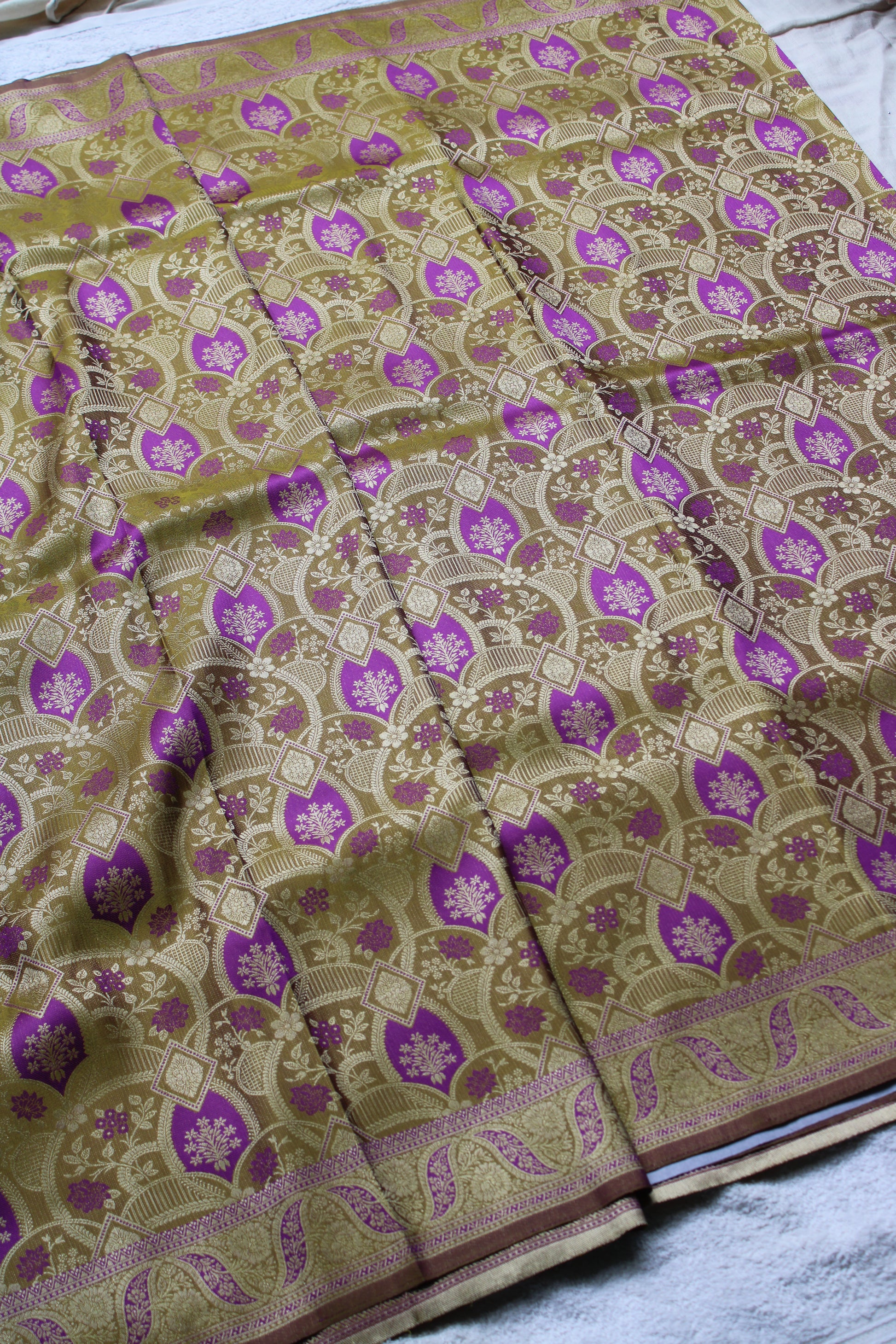 Light Green and Purple dual share Soft silk saree with allover design