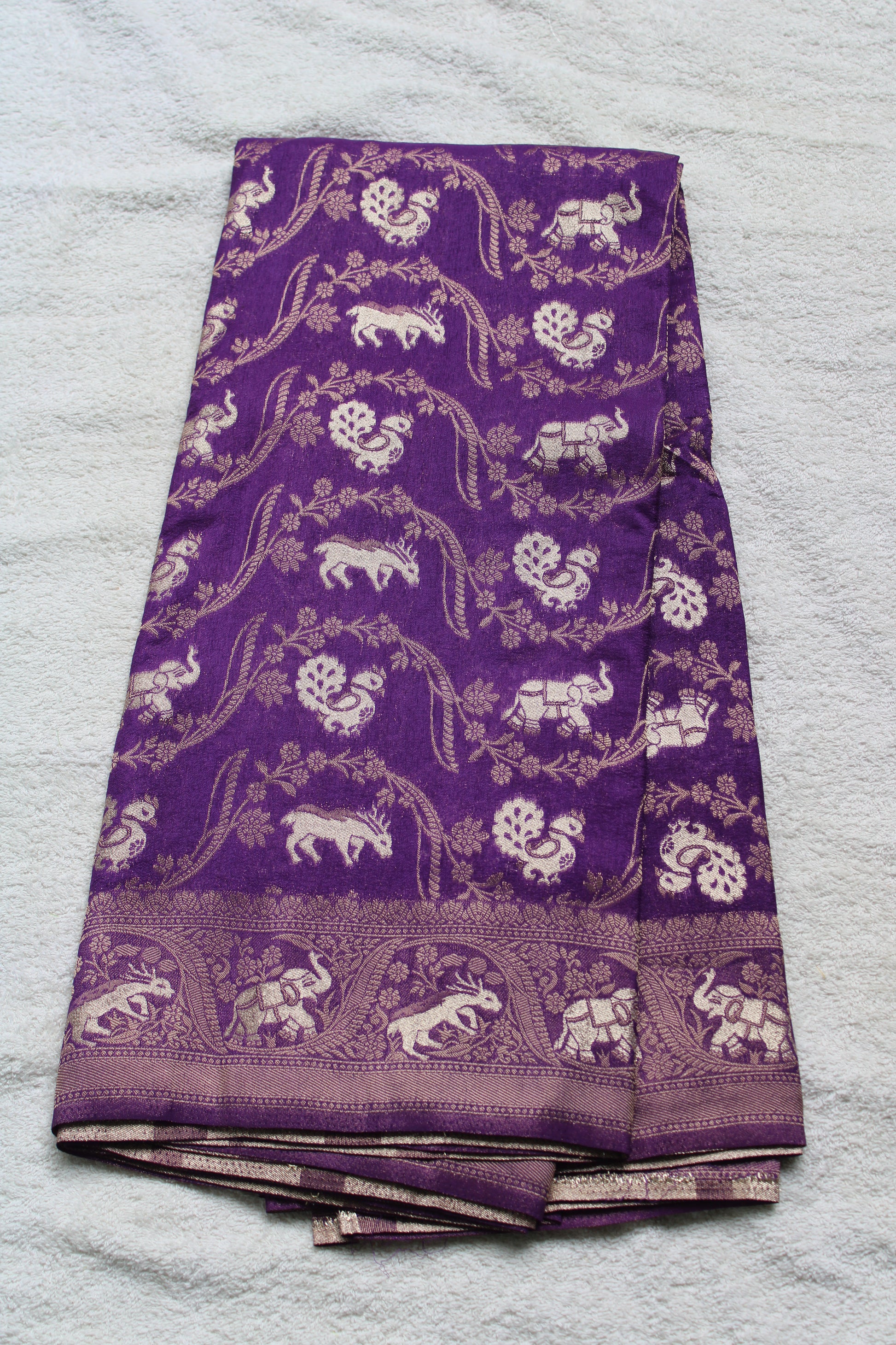 This purple semi-georgette saree features delicately crafted figure motifs that enhance its elegant appeal. The lightweight semi-georgette fabric ensures a graceful drape and comfortable wear throughout the day. Ideal for formal occasions or festive events, this saree combines sophisticated design with ease of styling for a refined traditional look.