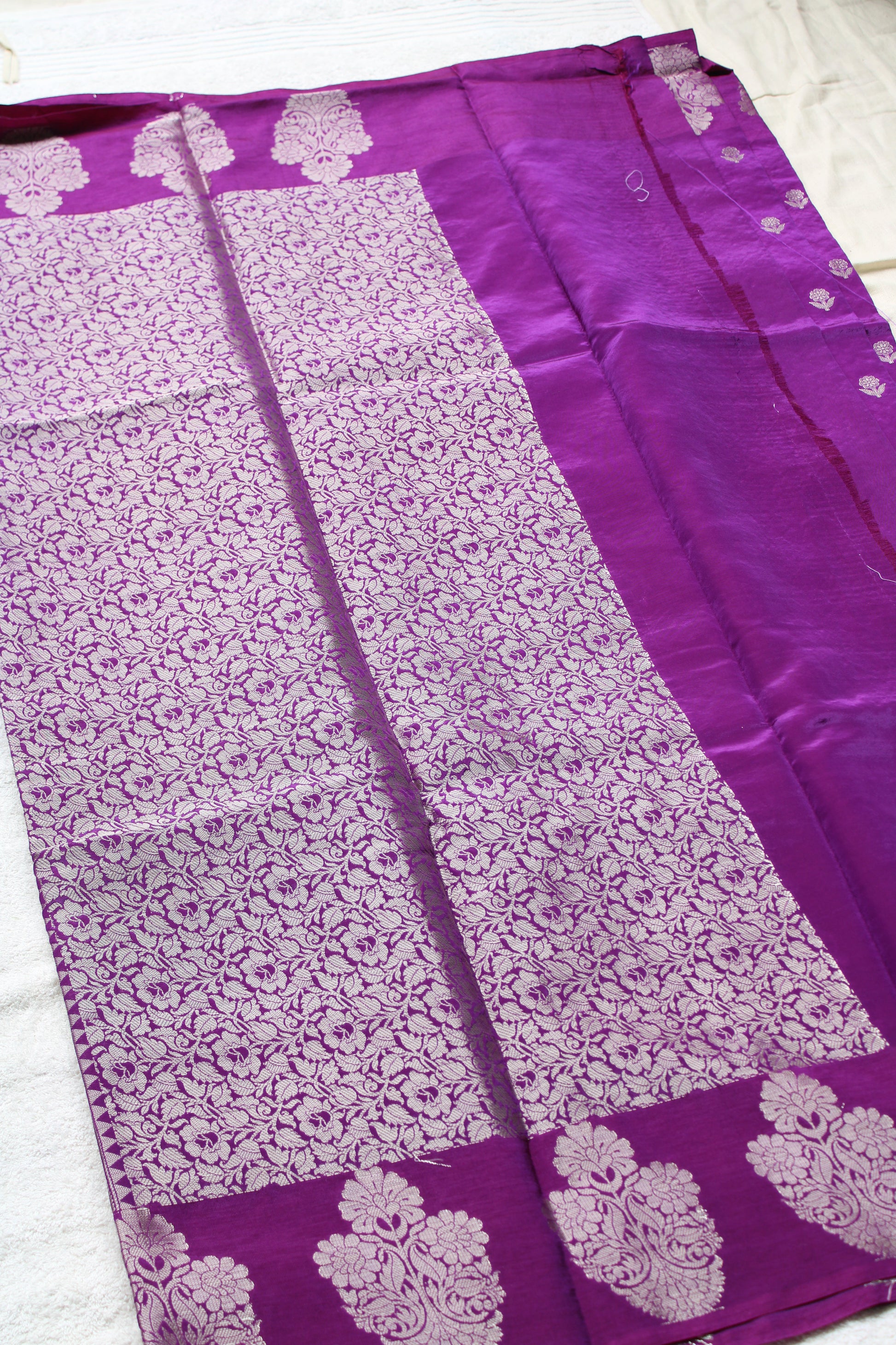 Purple Banarasi Raw Mango Open border with flower design