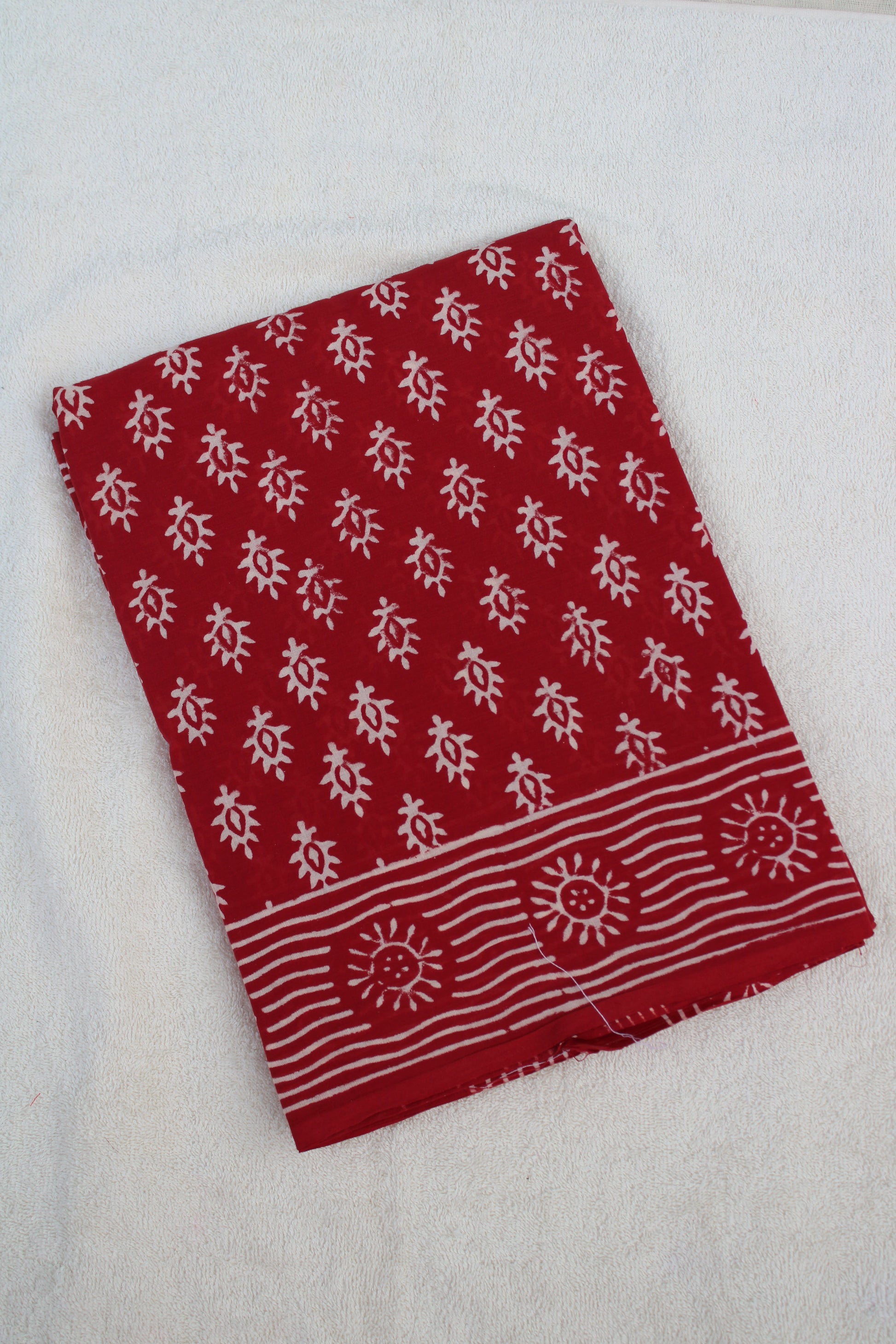 This red hand block printed pure mul cotton saree combines traditional craftsmanship with modern practicality. Its breathable fabric ensures all-day comfort, making it ideal for office or professional wear. The elegant block print adds a subtle yet sophisticated touch, perfect for a polished and confident look throughout your workday.