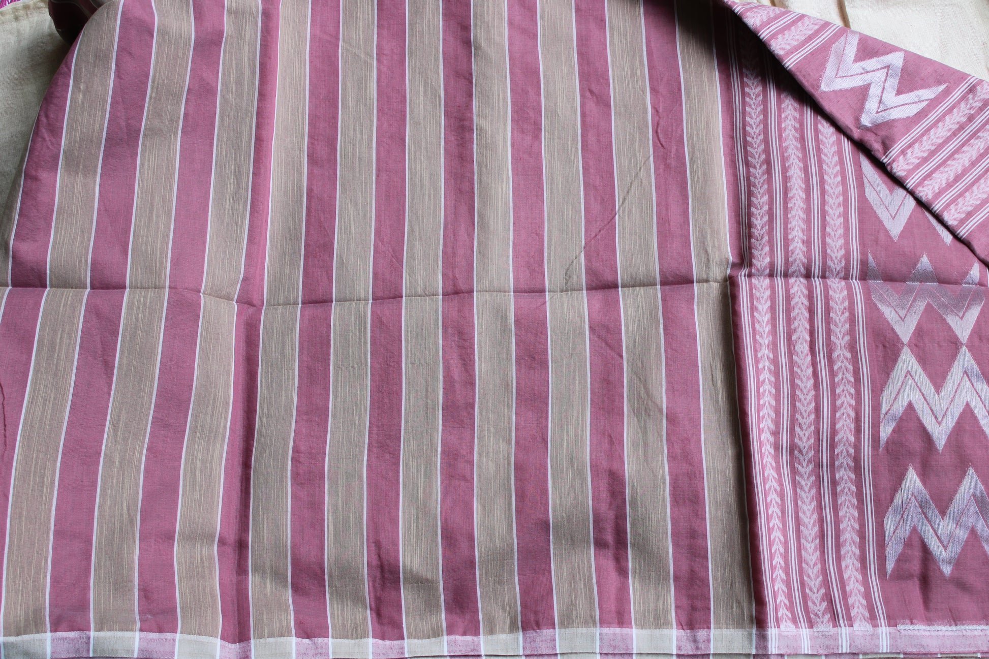 Pink Vertical stipes Cotton silk saree with zamdani weaving pallu