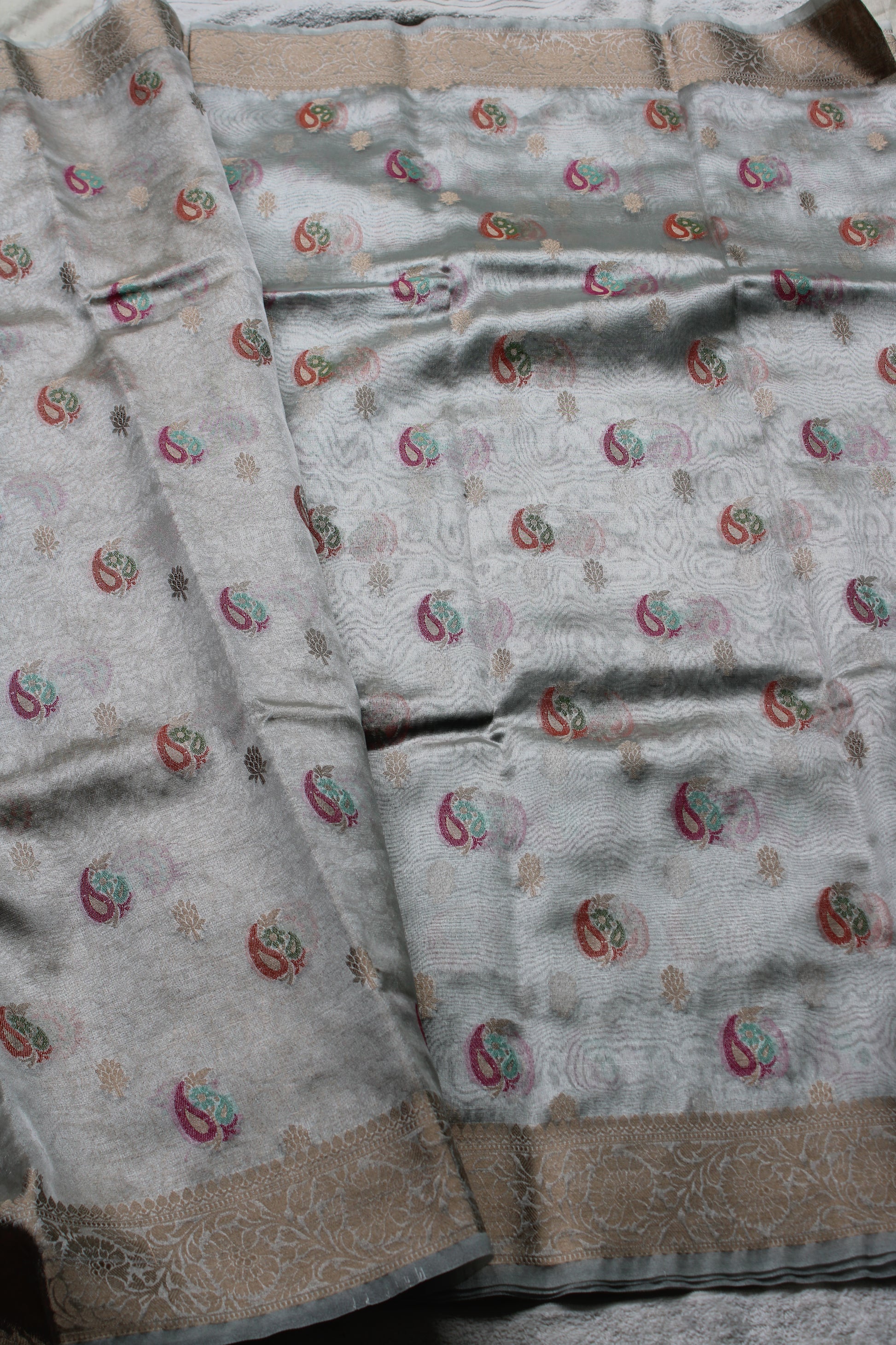 Ivory Organza Banarasi Saree with Meenakari Mango design